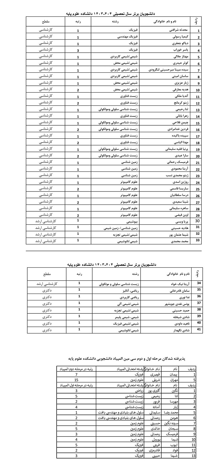 لیست مدعوین جلسه تقدیر از دانشجویان برتر سال تحصیلی ۴۰۴ـ۴۰۳ و...