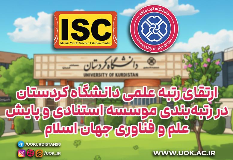 در جدیدترین رتبهبندی موسسه استنادی جهان اسلام (ISC)، دانشگاه کردستان با ۱۰ پله صعود، در جایگاه ۳۱ کشور قرار گرفت. این دانشگاه در سطح جهان اسلام نیز موفق به ارتقای جایگاه خود شده است.